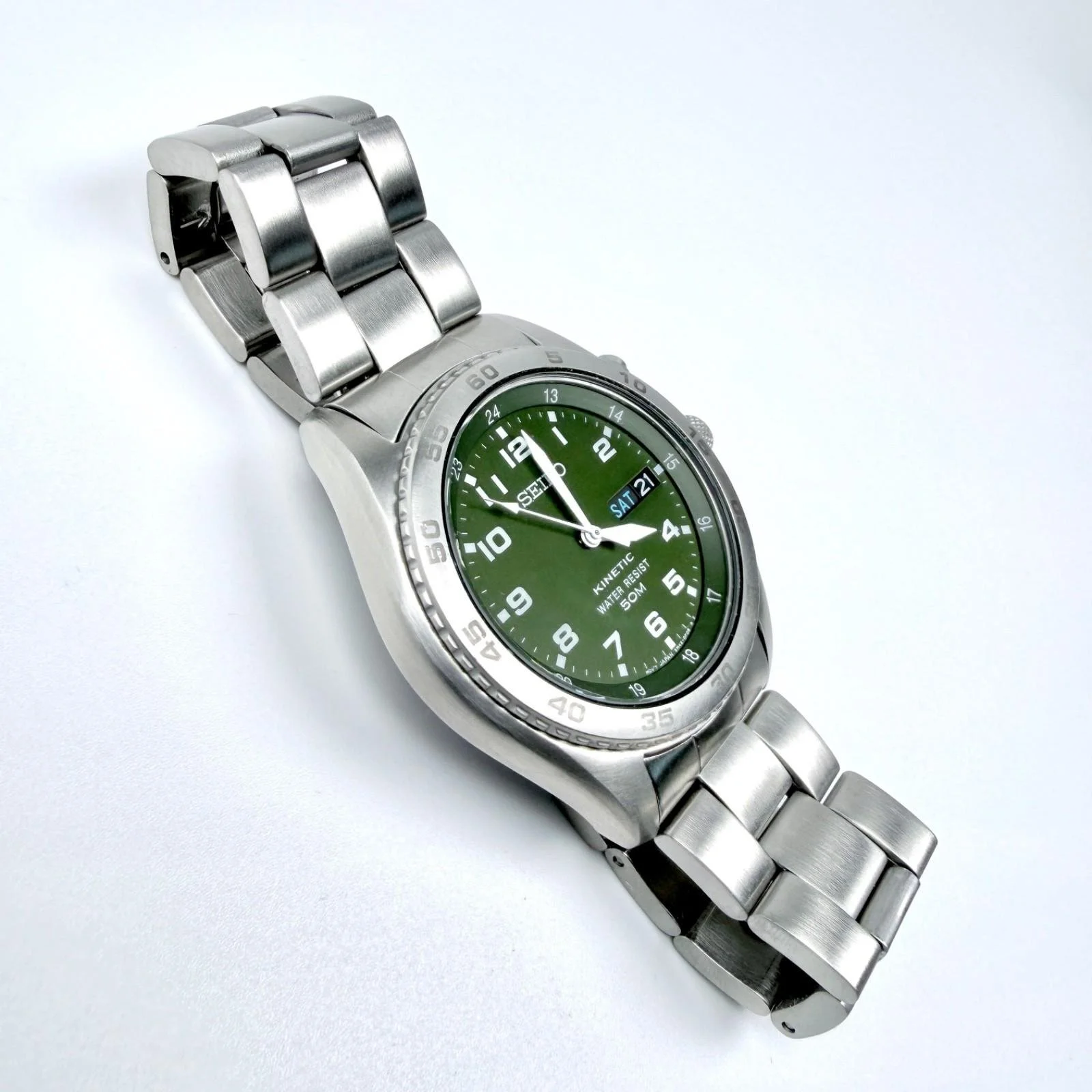 Seiko Kinetic Military Style Watch - Day/Date - 5M63-0A50