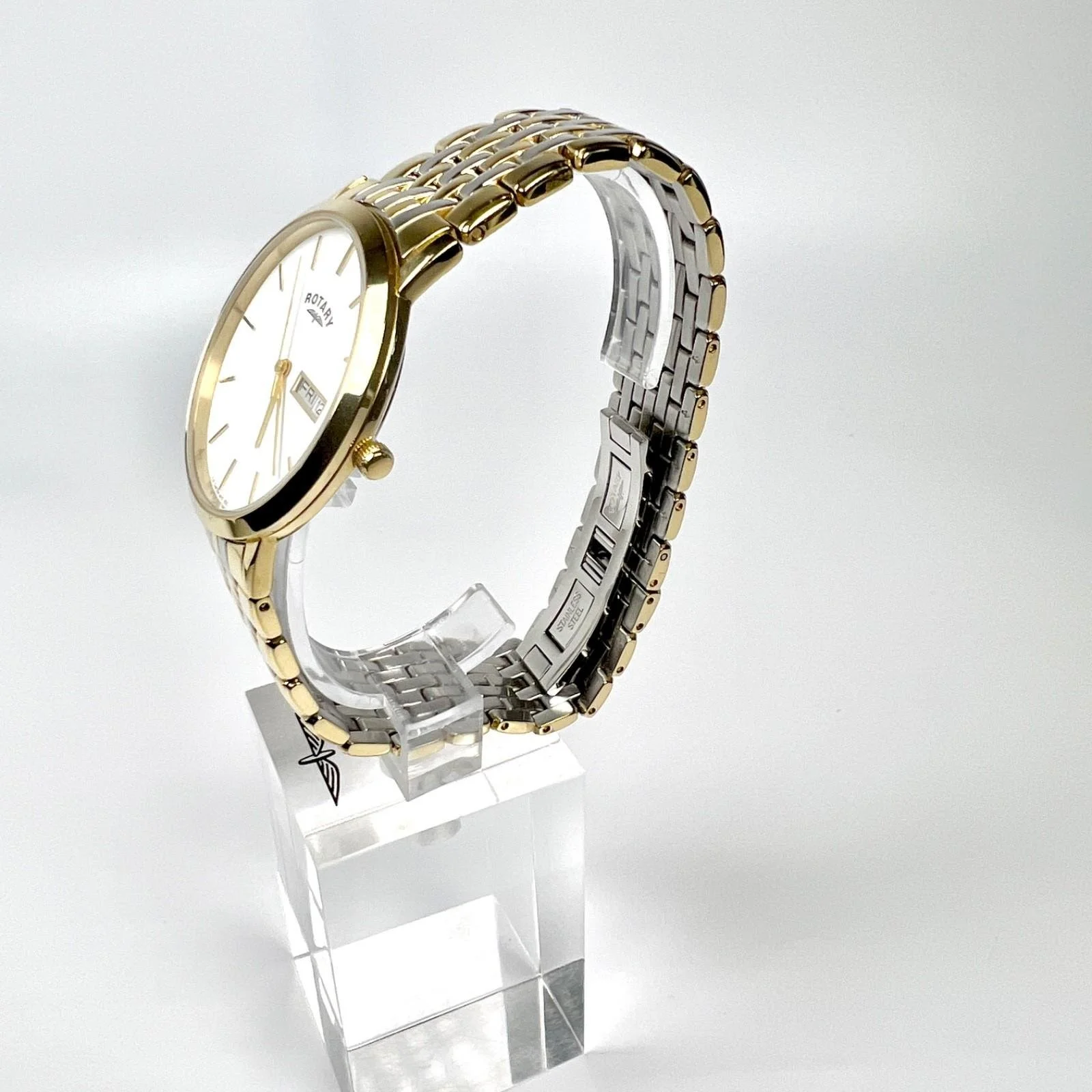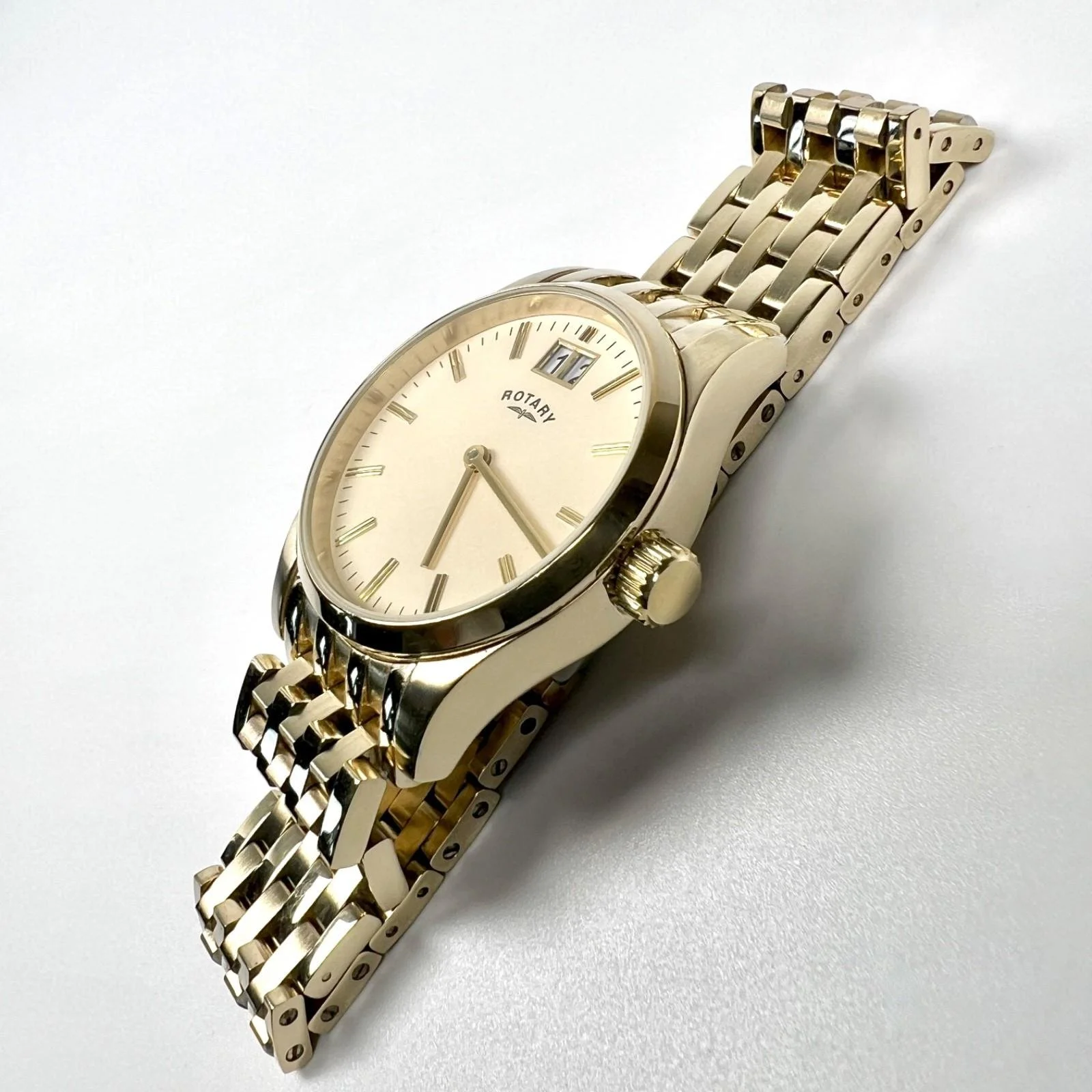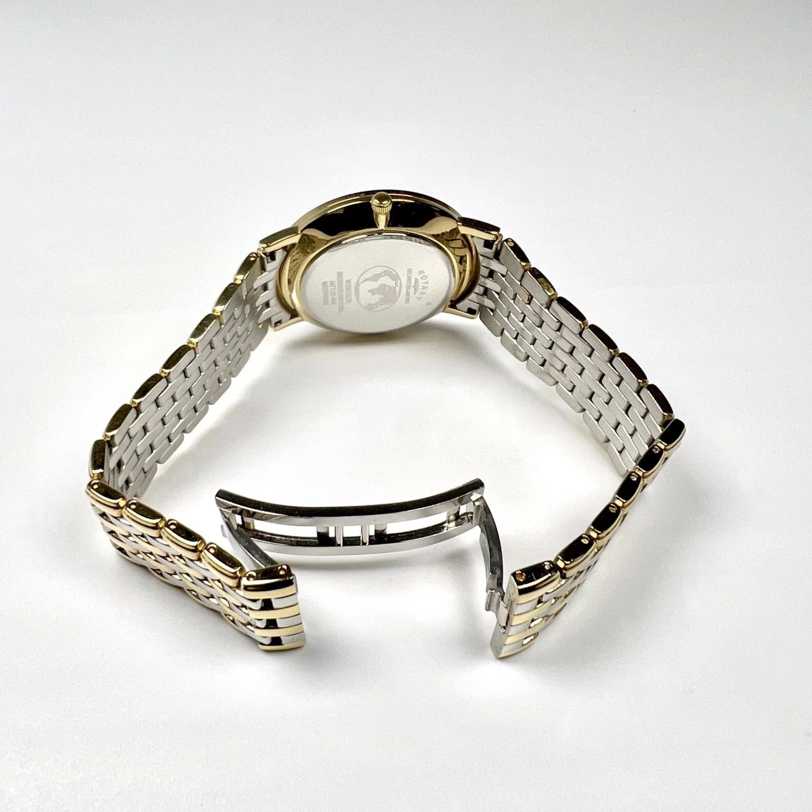 Stainless steel case with polished sides, brushed bezel & lugs and ridged-edge crown