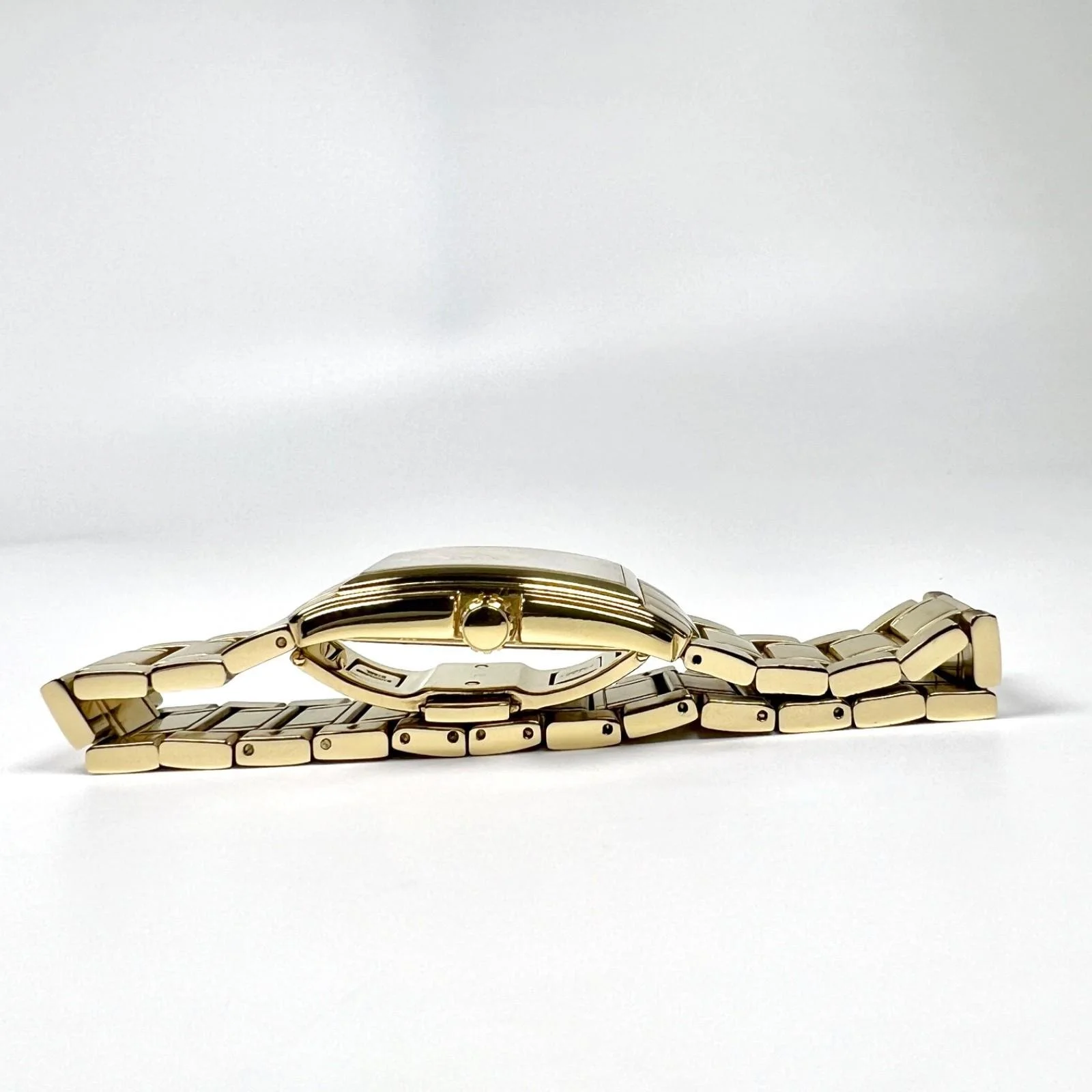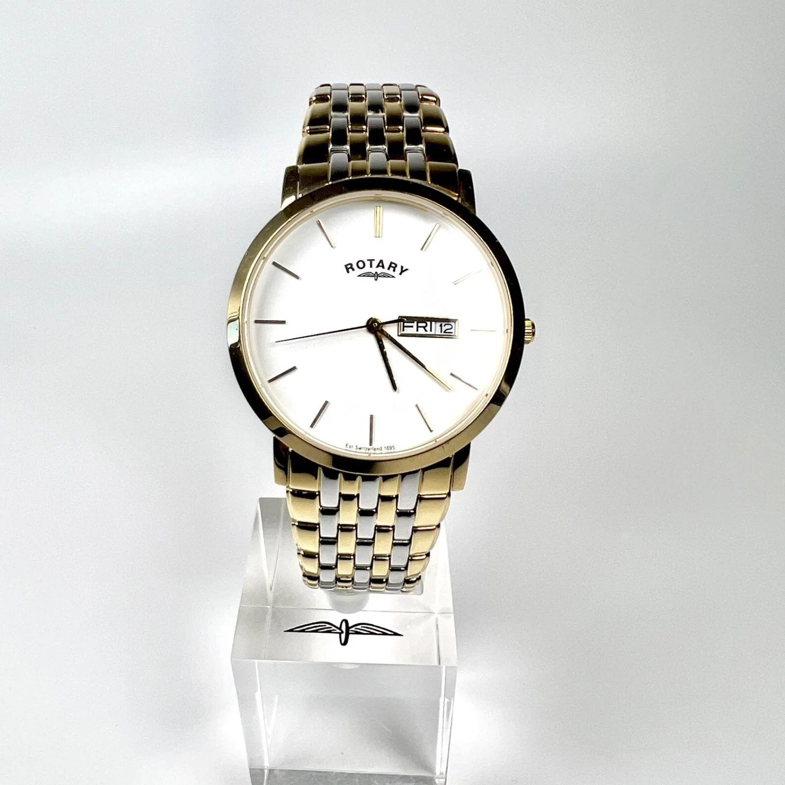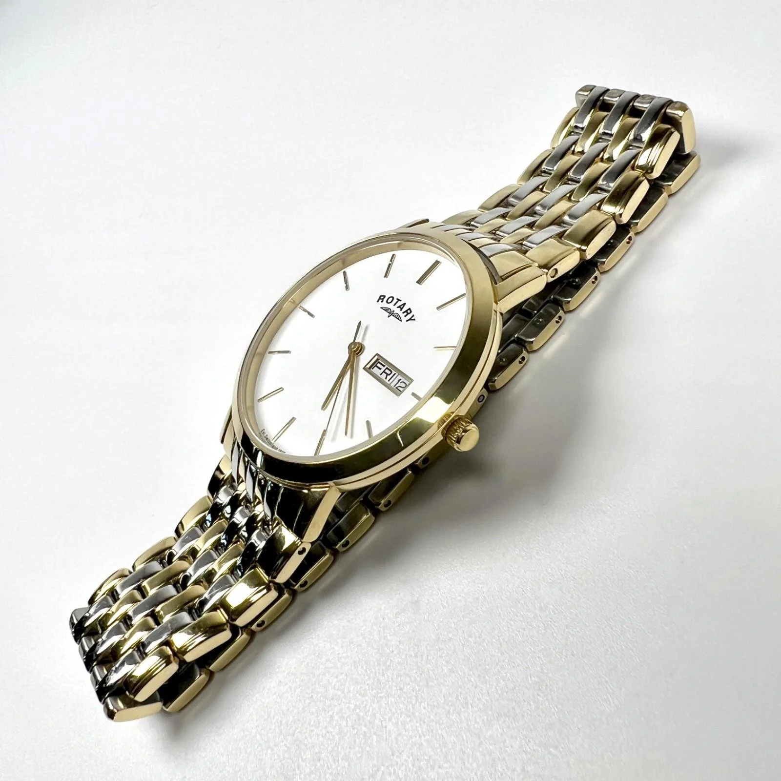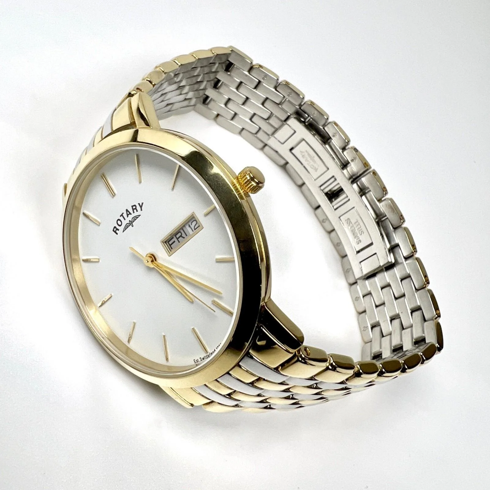 Stainless steel case with polished sides, brushed bezel & lugs and ridged-edge crown