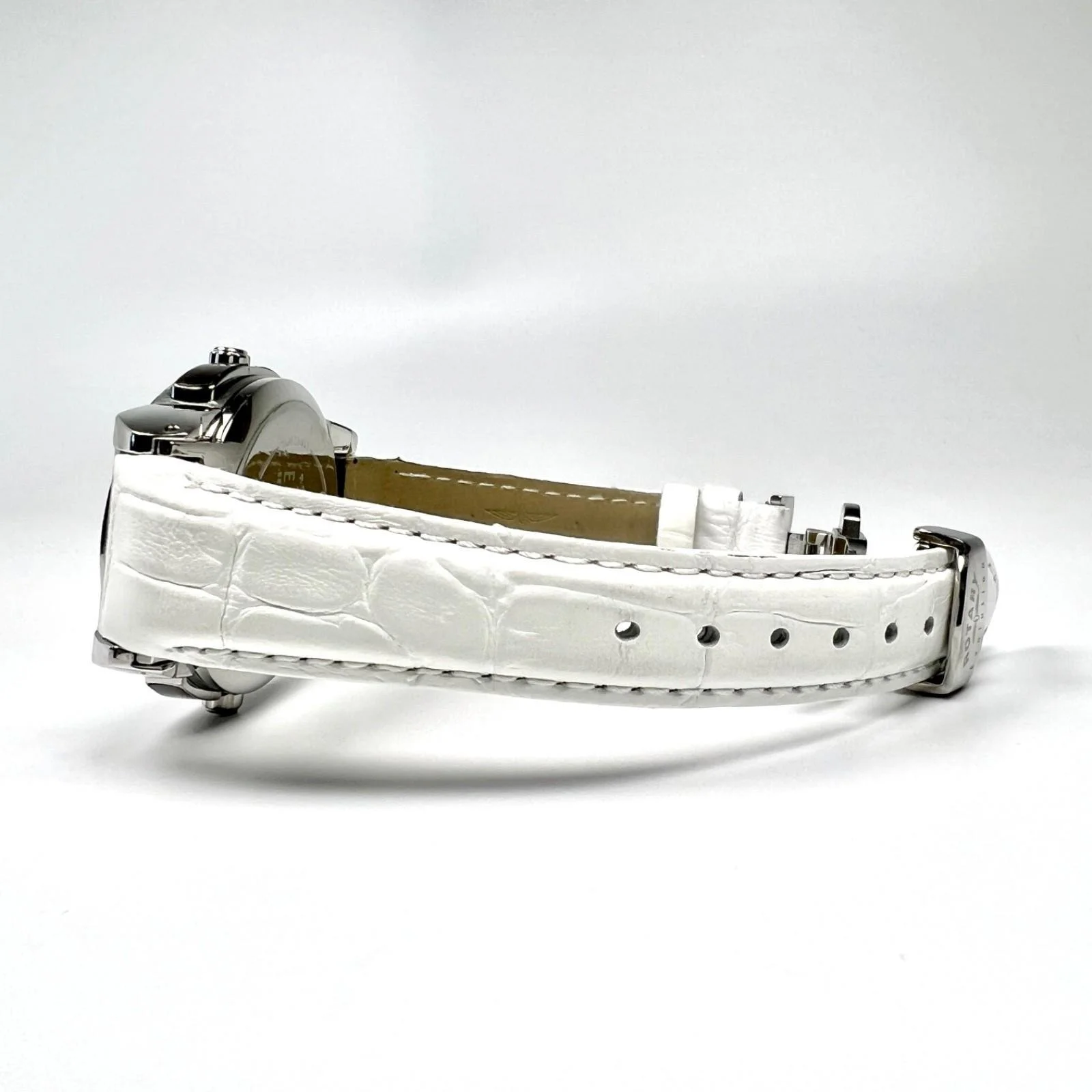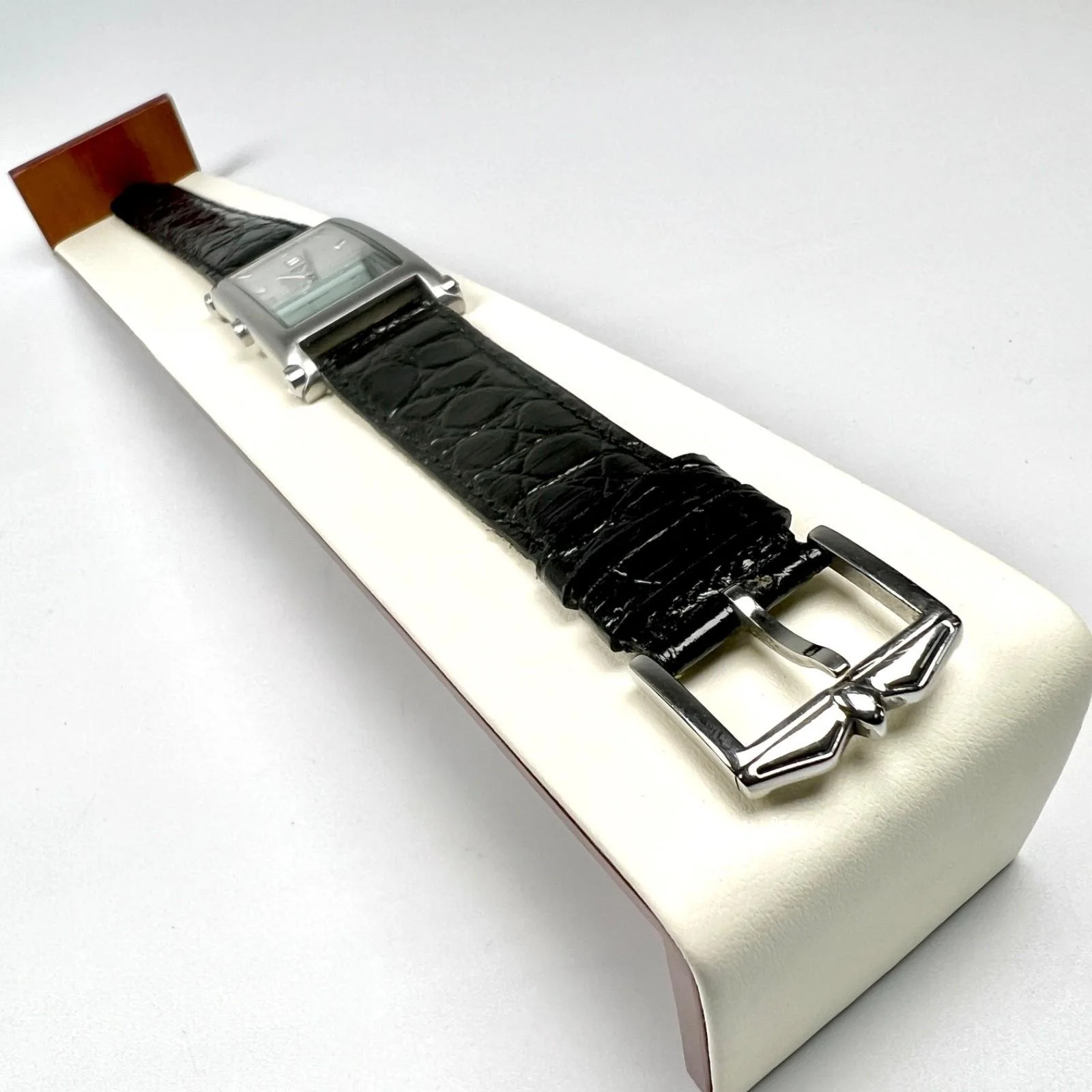 Rotary croco grain 2-piece black leather strap with polished signed steel butterfly clasp