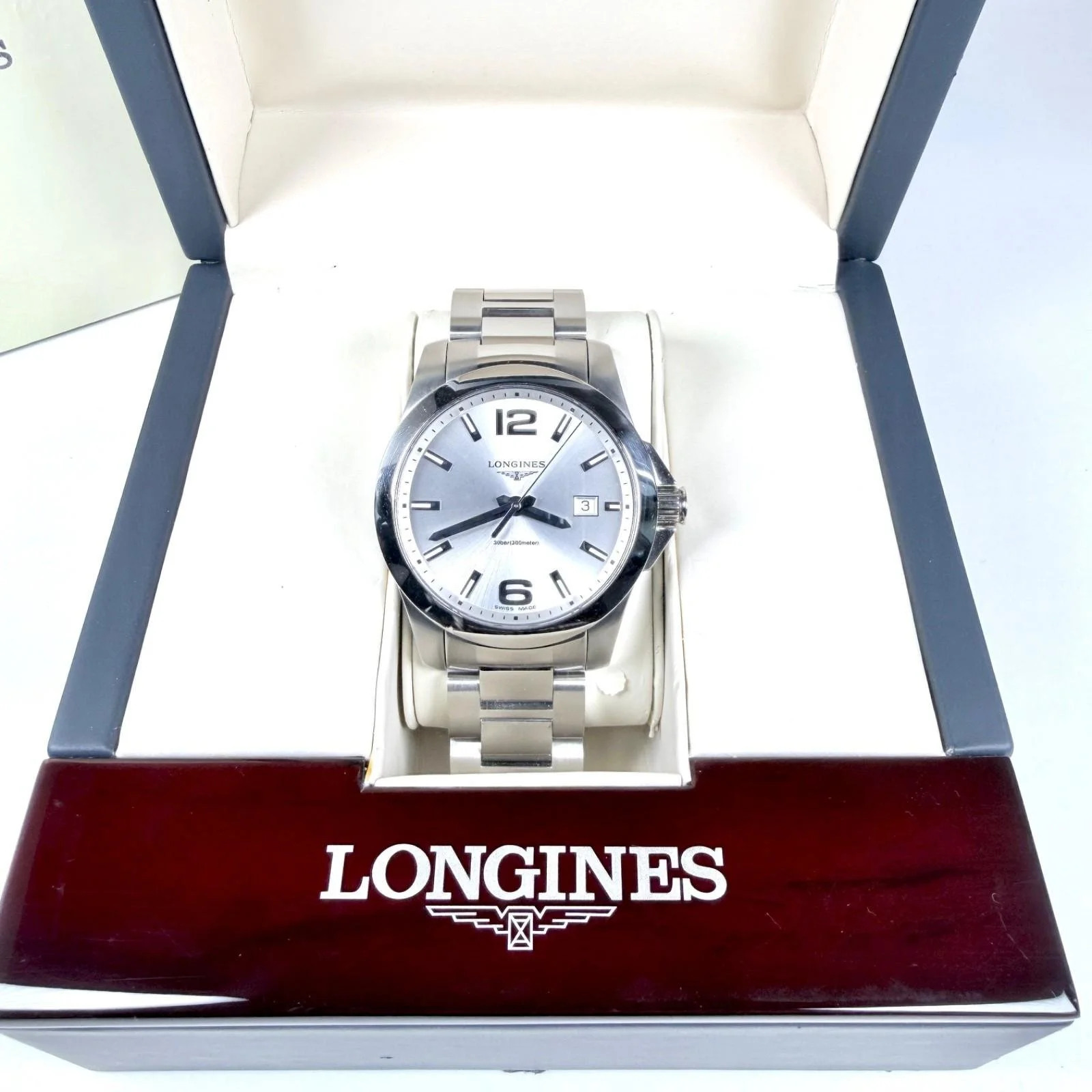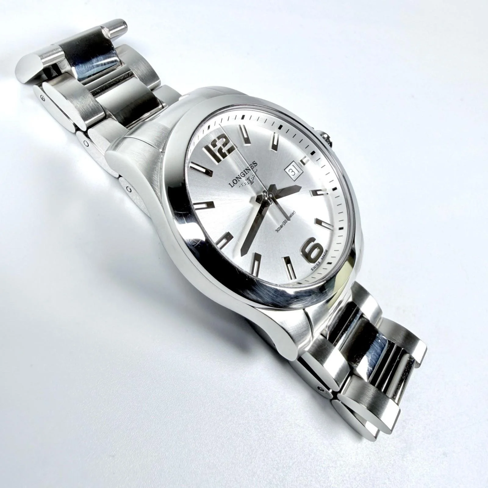 Original Longines brushed stainless steel bracelet with polished inner links, with signed hidden deployment clasp