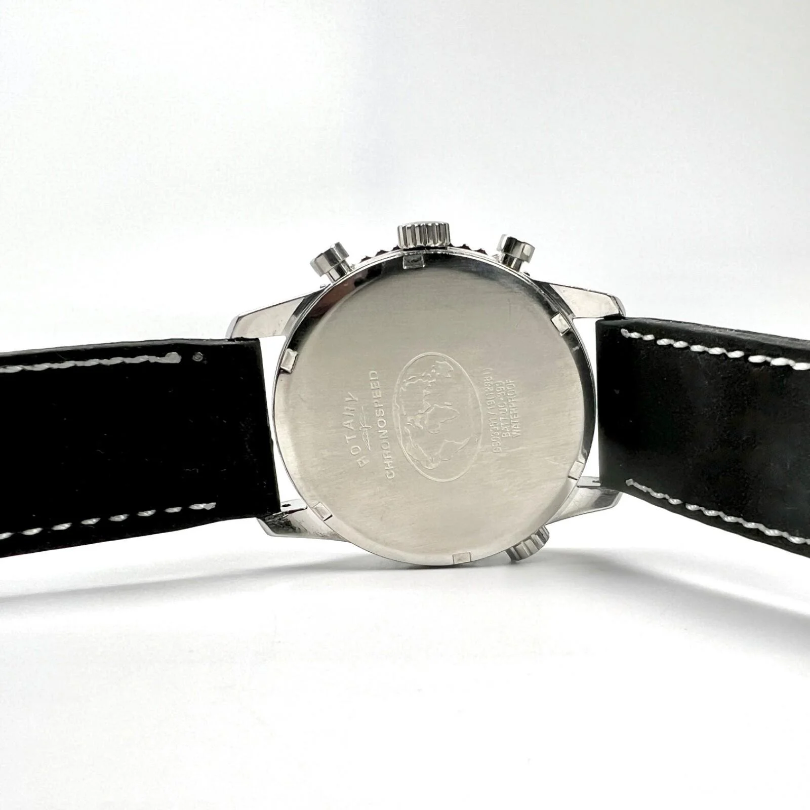 Black dial with silver luminescent hands with luminescent numeric hour indexes with outer minute ring