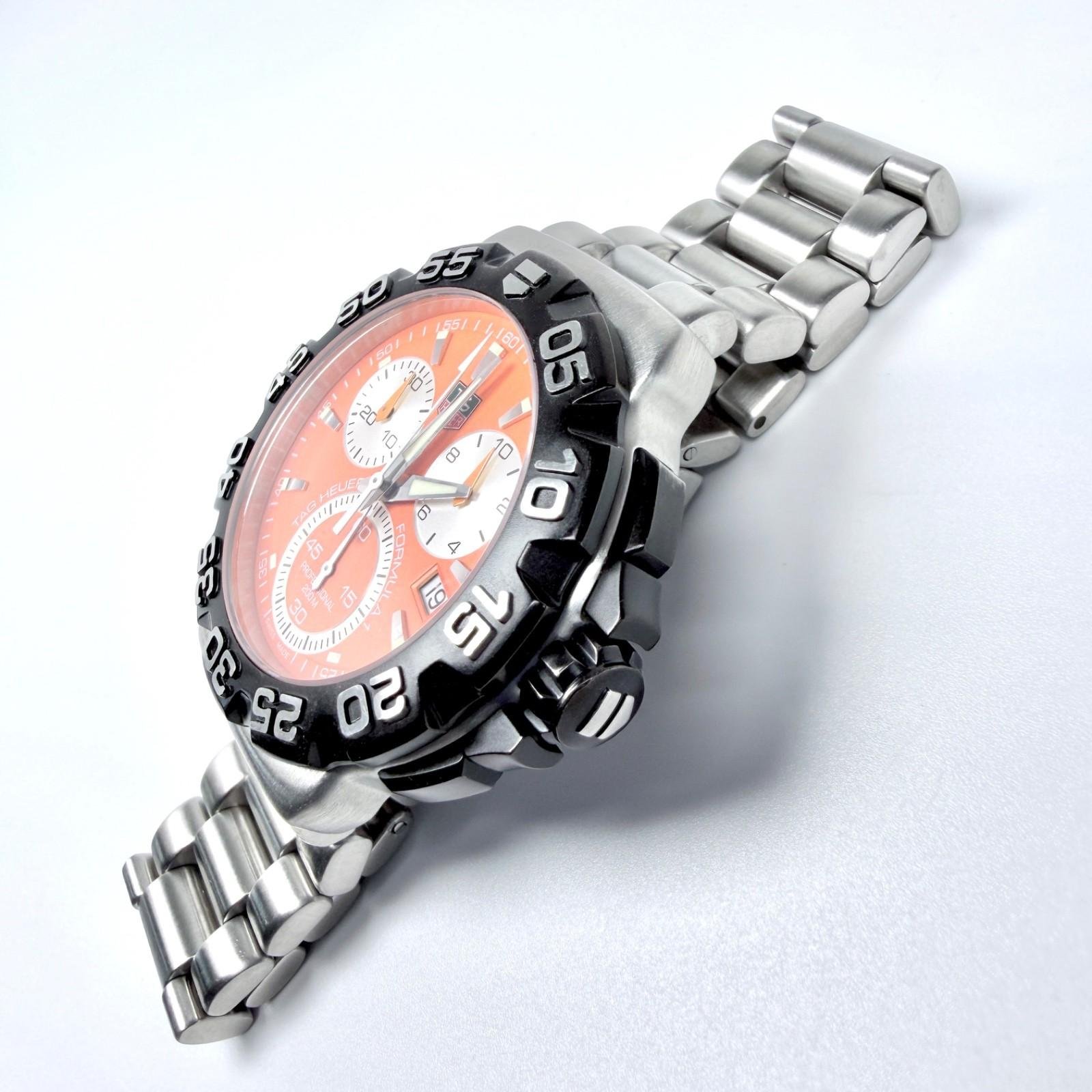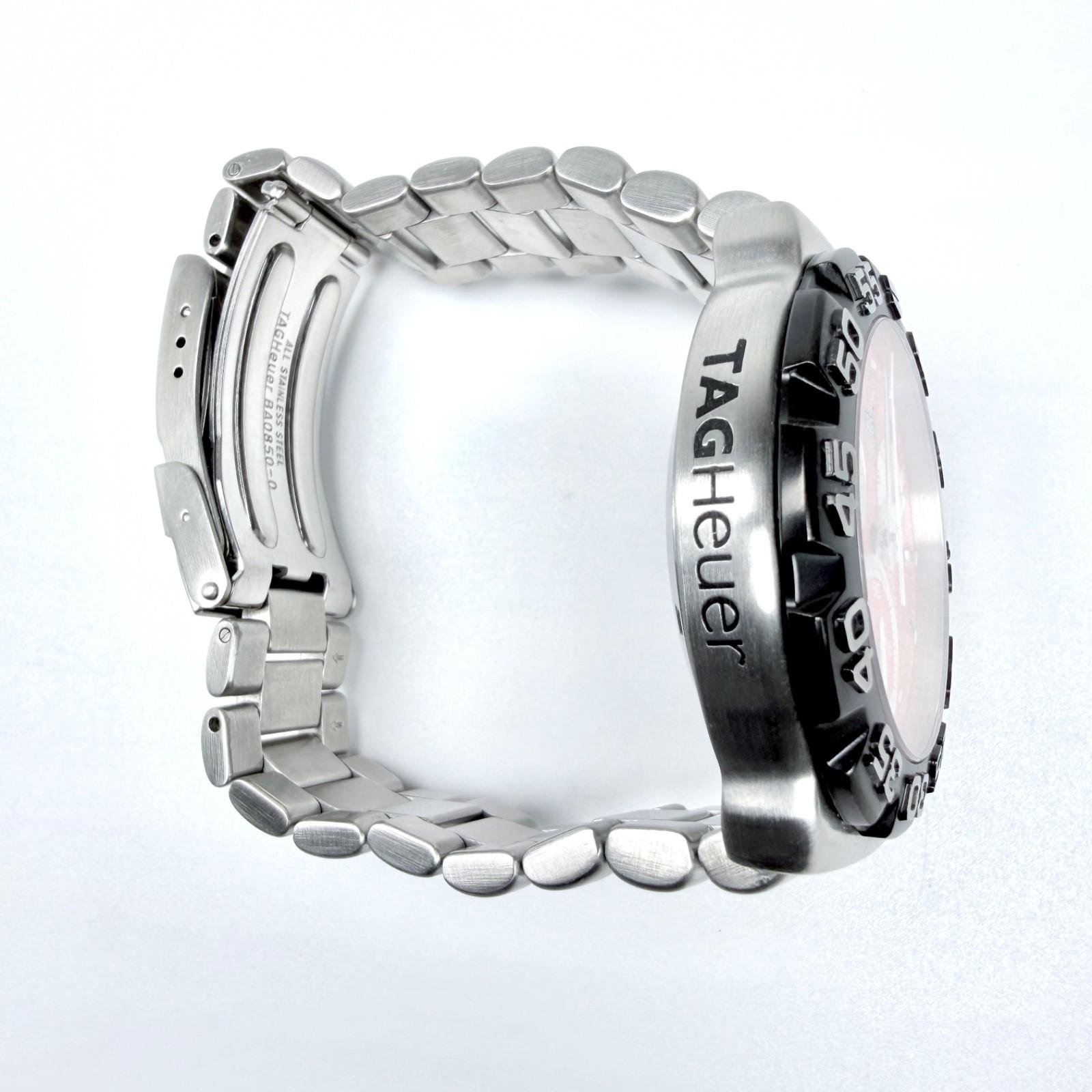 TAG Heuer brushed stainless steel bracelet with divers extension, signed fold-over clasp