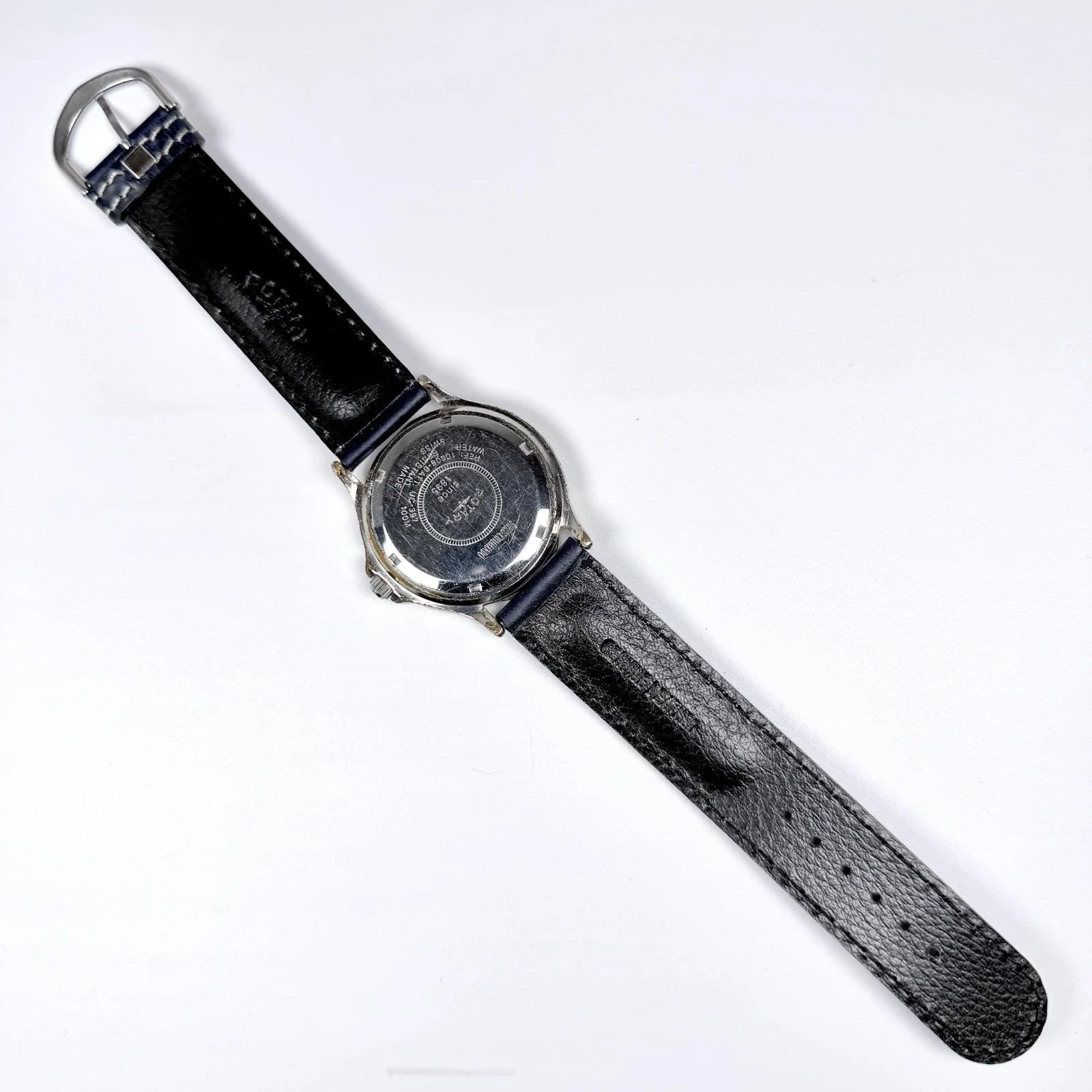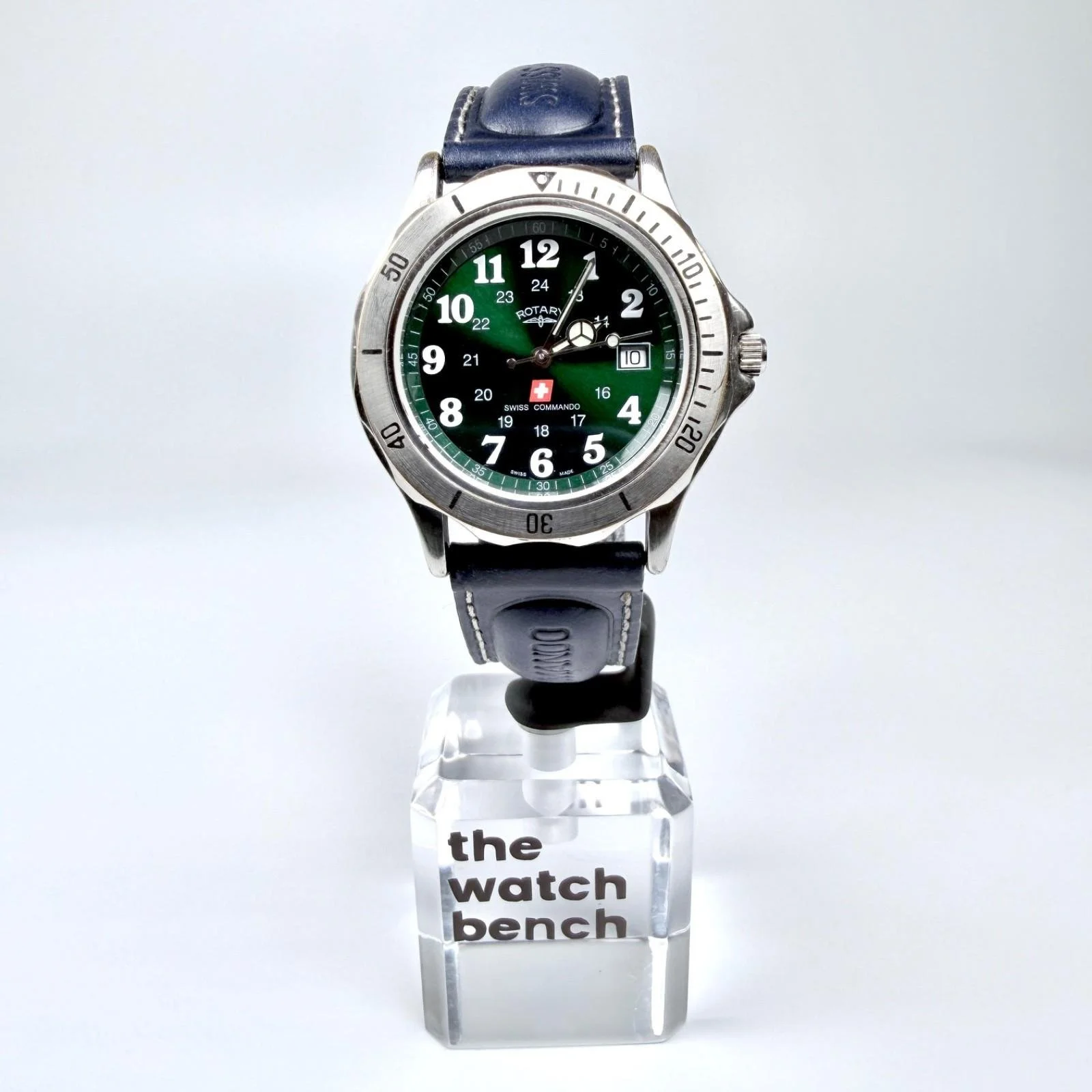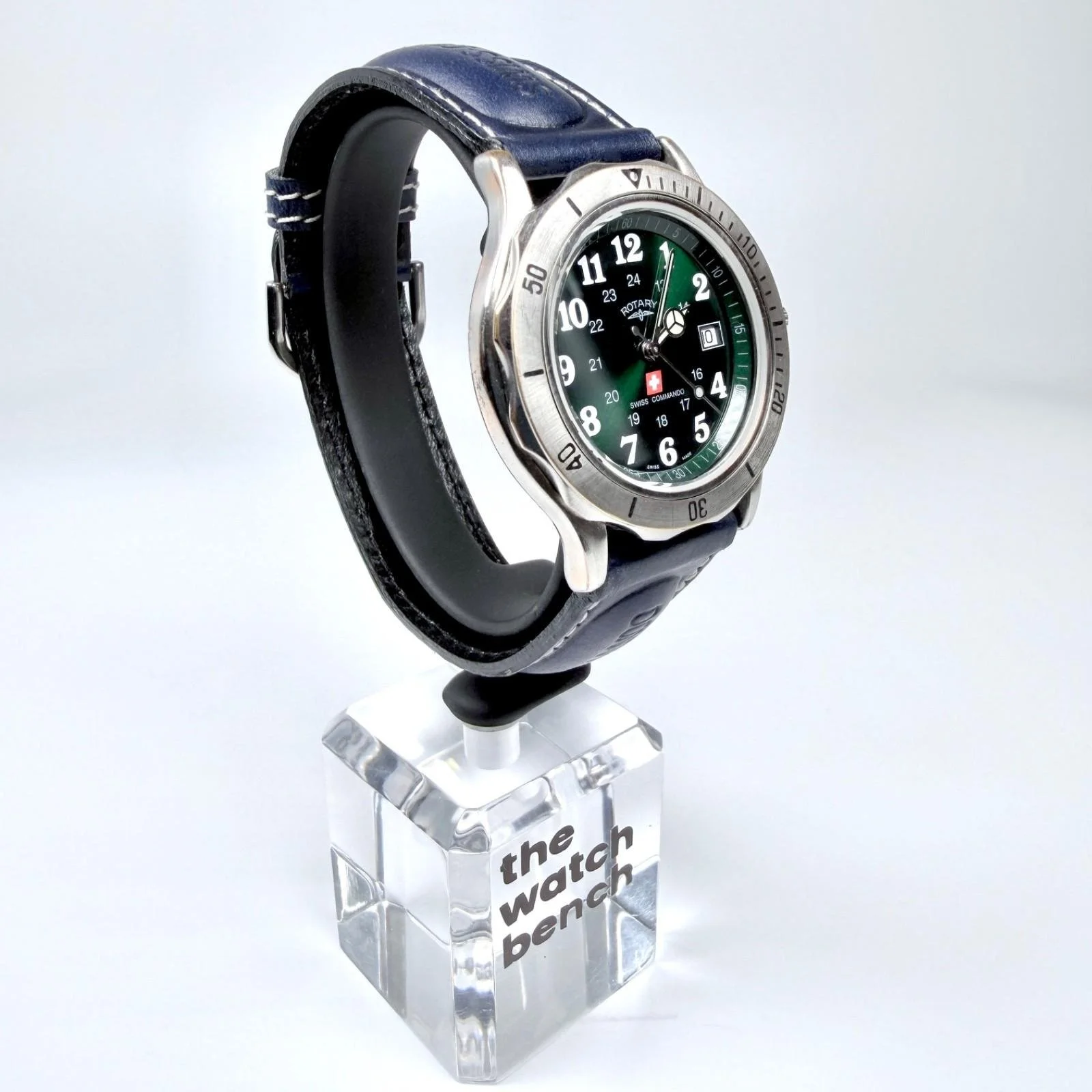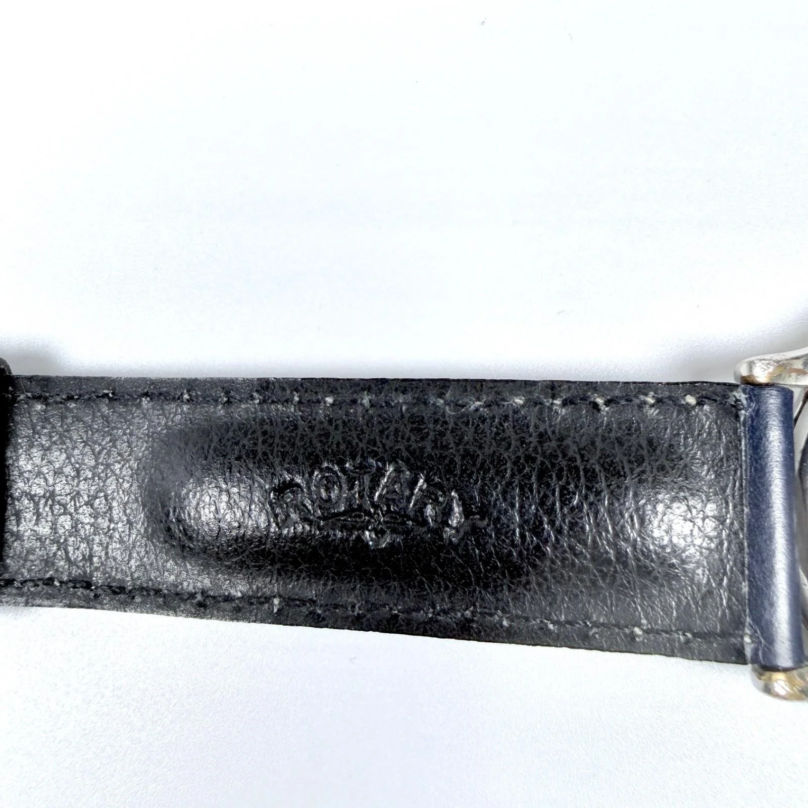 New blue/white stitched Rotary 'Swiss Commando' padded 2-piece leather strap with polished steel buckle