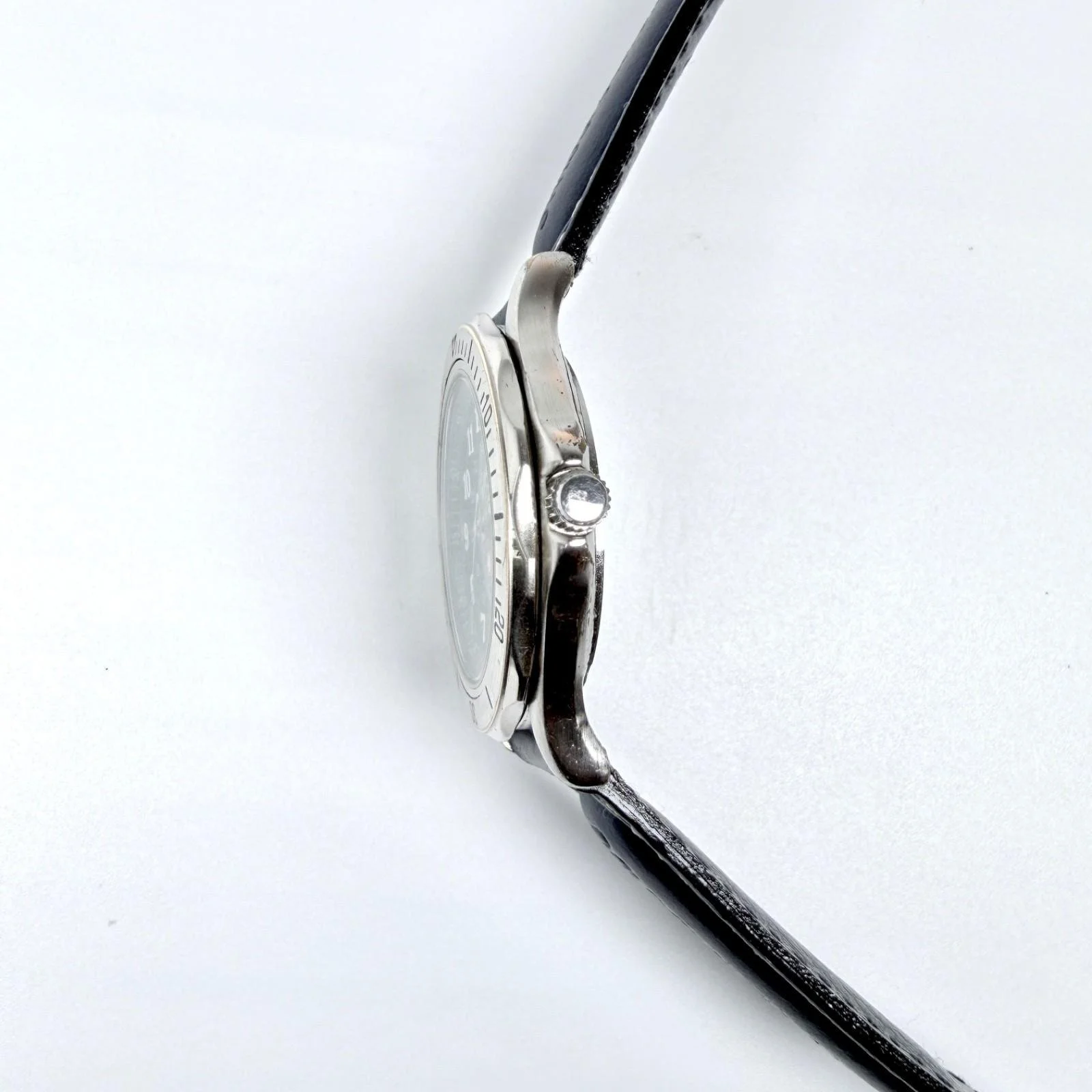 Stainless steel case with polished sides, brushed uni-directional bezel & lugs with ridged-edge screw-down protected crown